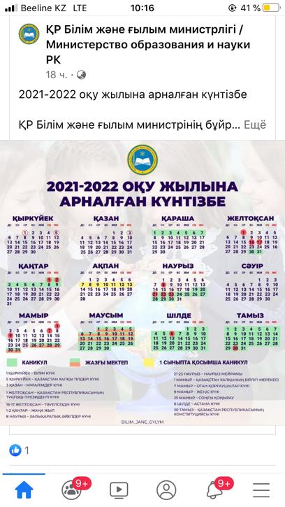 • 2021-2022 оқу жылына арналған күнтізбе