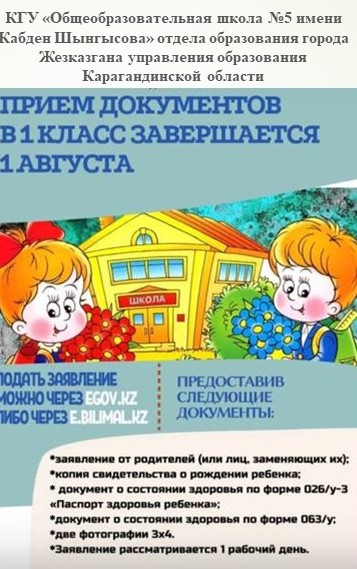 • 1 сыныпқа құжаттарды қабылдау 1 тамызда аяқталады
